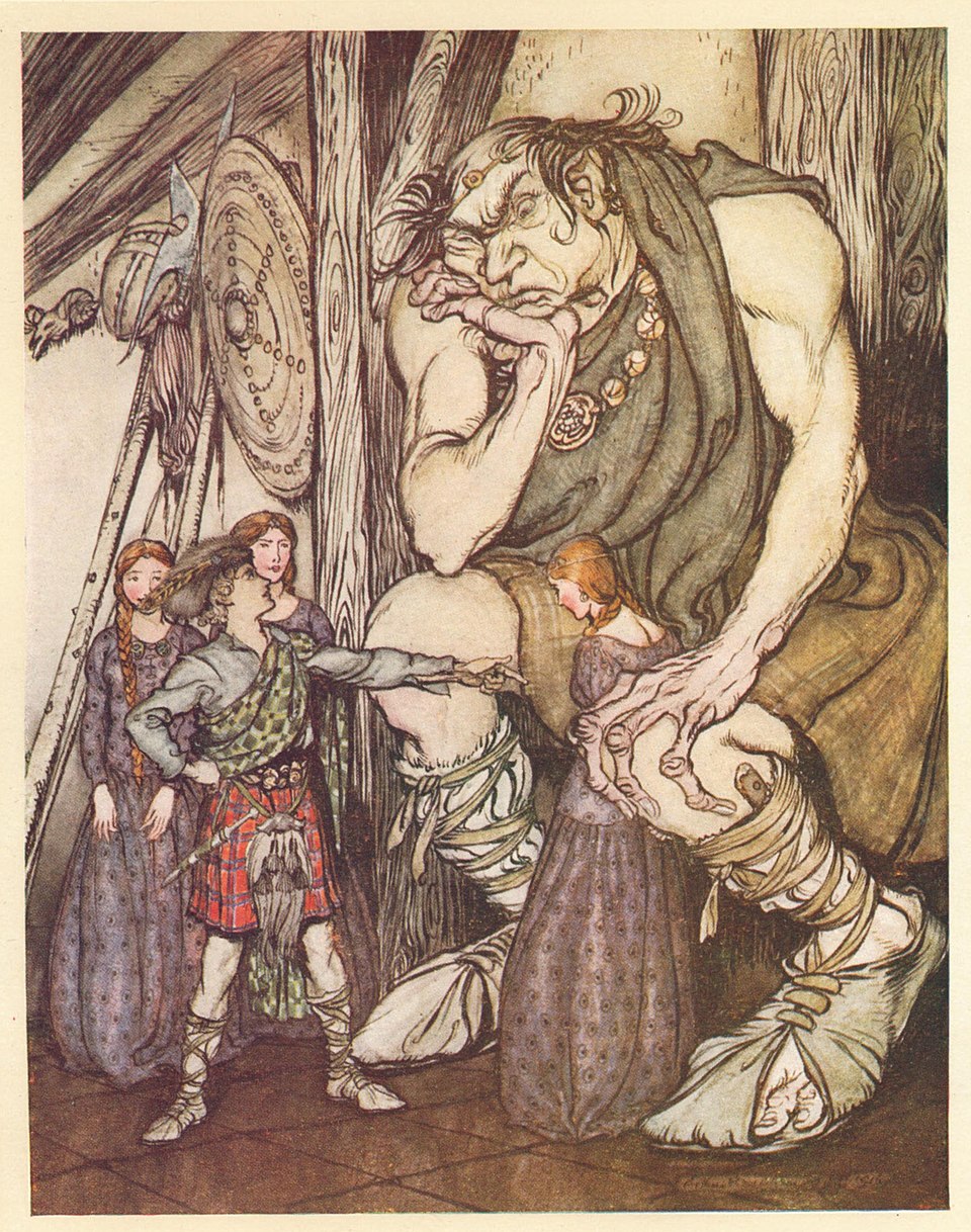 “What I want to know,” Thalia chimes in, “is why isn’t a giant’s daughter herself a giant? She doesn’t look like one in either Lang’s or Jacob’s story illustration.”