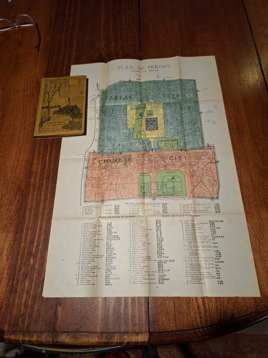 Why I got it, I no longer remember. I don’t recall having any interest in China. It is a travel guide to Peking, filled with descriptions, suggestions, photos, foldout maps, and advertisements. One of the maps, tucked into its own little pocket at the back of the book, is this.