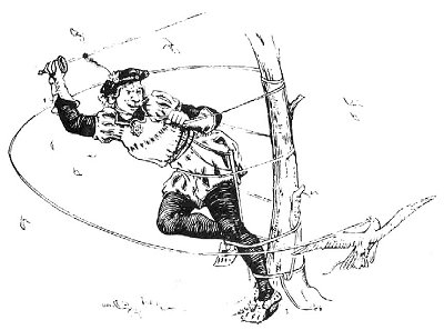 Escaping, Florentine flies over the sea to return to his mother, leaving his wife to be remarried the next day. His mother, with instructions from her mentor, the Spae Wife of Ostree, aids her son. At his request, she turns him into a goshawk, his seven sons into swans, and her dancers and pipers, who have come to celebrate the prince’s return, into herons.