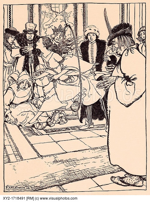 Again, the elder two brothers protest and the king now calls for them to go out and return with the most beautiful woman. The three feathers are cast.
