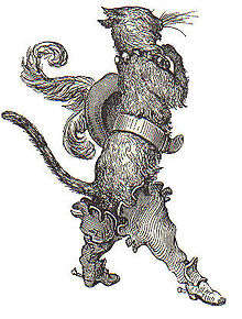 Puss in Boots asks if it is true that the ogre can change shapes. The ogre obliges by turning himself into a lion, quite frightening the cat. Then Puss in Boots asks if it is possible—expressing some doubt—that the ogre can turn himself into something as small as a mouse. Again, the ogre obliges and is immediately pounced upon and eaten by the cat.