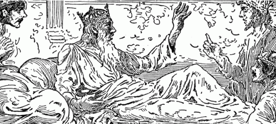 Years later, the king loses his sight, which can only be restored by the Water of Life. The three sons-in-law go in search. The gardener singes a hair and gets the Water of Life and tricks his brothers-in-law into thinking they have it.