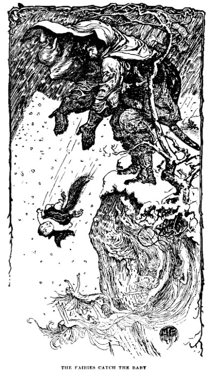 “Well, it’s a miracle of course, although the illustrator, H.J. Ford, labels his rendition The Fairies Catch the Baby.” I show Duckworth the picture.