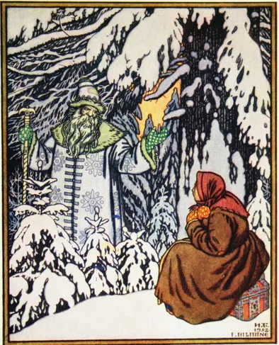 The tale Jack Frost comes from the nineteenth-century collector Aleksandr Afanas՜ev, now compiled in Russian Fairy Tales. However, different translators have labeled the story Father Frost, or King Frost. In Russia, there is also a Grandfather Frost (Ded Moroz), who is really a Santa figure. All this does not give me much clarity.