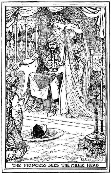 However, the sultan was outraged when he discovered that his new son-in-law would be a severed head. Nonetheless, the princess agreed to the marriage, she finding it, after all, a handsome head.