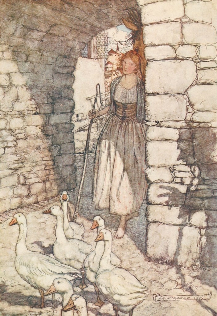 “To keep it in context,” I explain, looking at Jini, “the goose girl is really a princess whose role—let’s call it identity theft—has been taken over by a maid-in-waiting. The real princess is demoted to being a goose girl. The maid-in-waiting has forced the real princess to swear in the name of God not to reveal the exchange of status.
