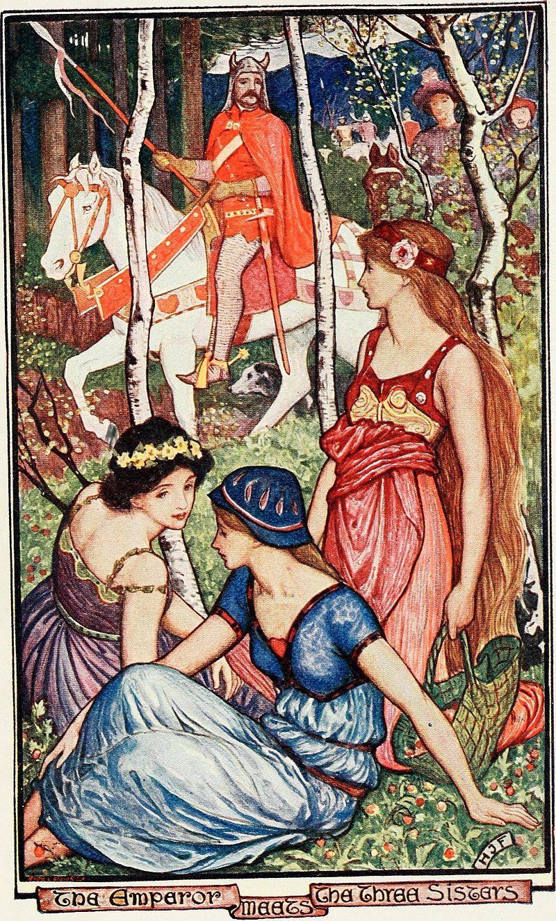 “In both versions, the king hears or is informed of three maidens expressing their marriage wishes. The king grants their wishes, even though the girls are of no particular status, and he marries the youngest.