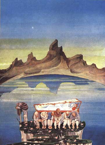 The next city has a tree that no longer bears golden apples nor even leaves. When the lad crosses a river, the ferryman wants to know why no one will relieve him from his task.